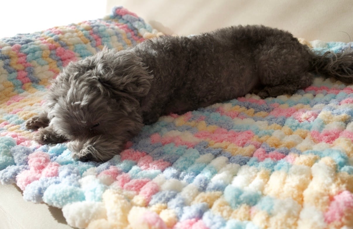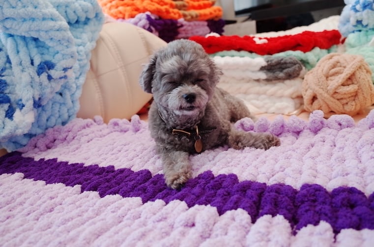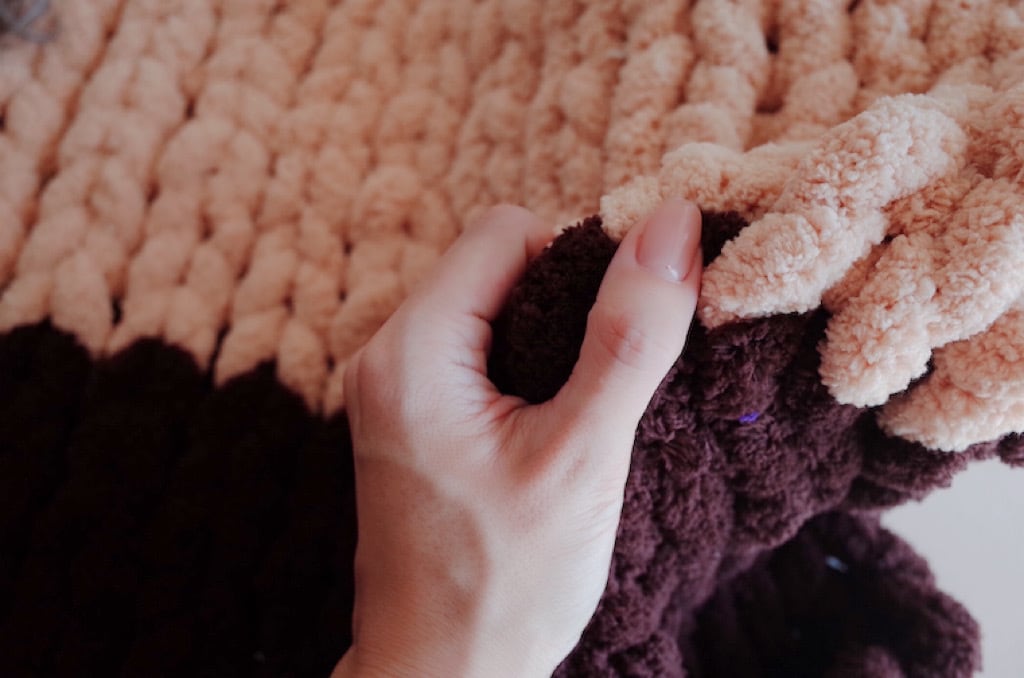 ひとつひとつ手編みで仕上げたブランケット。